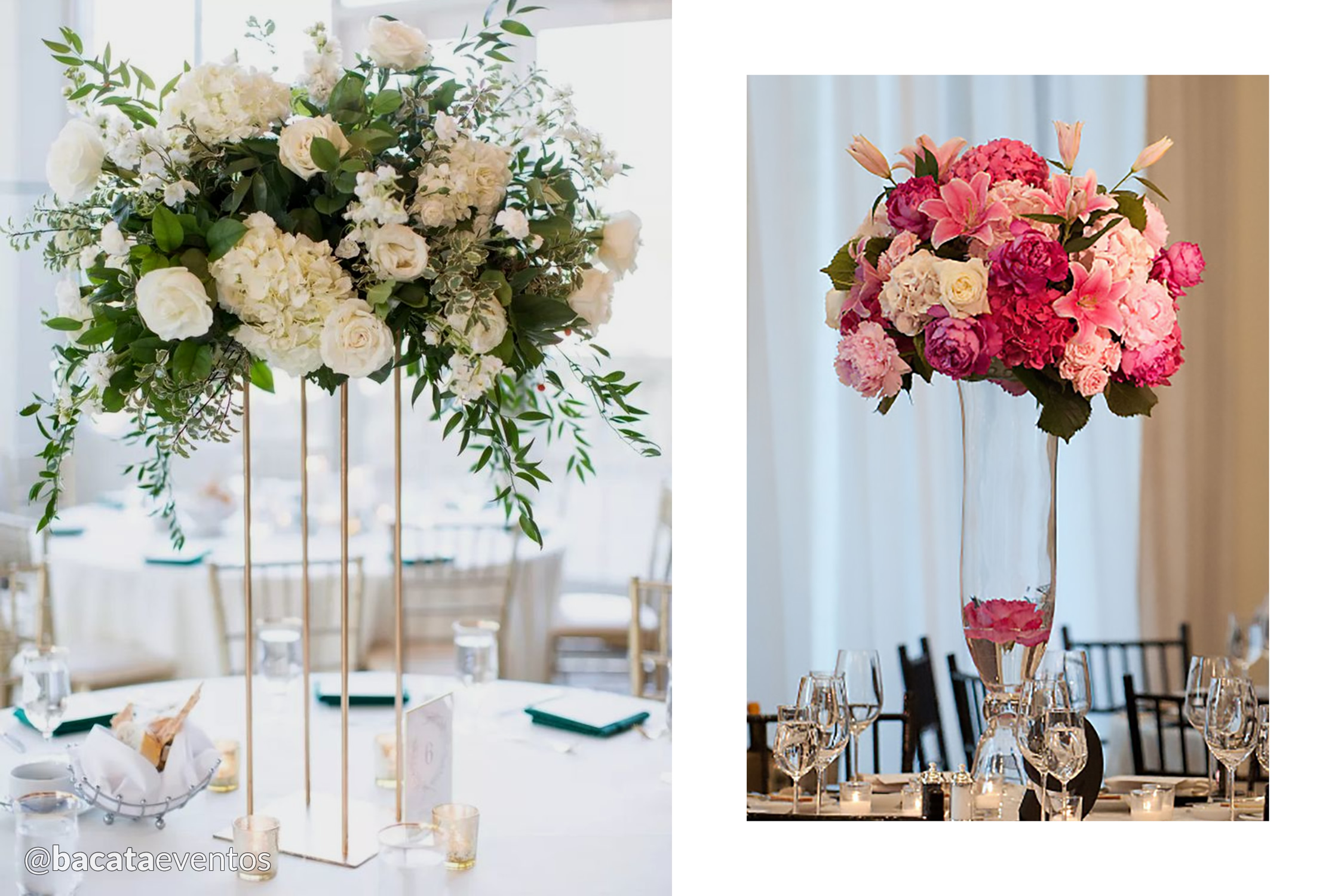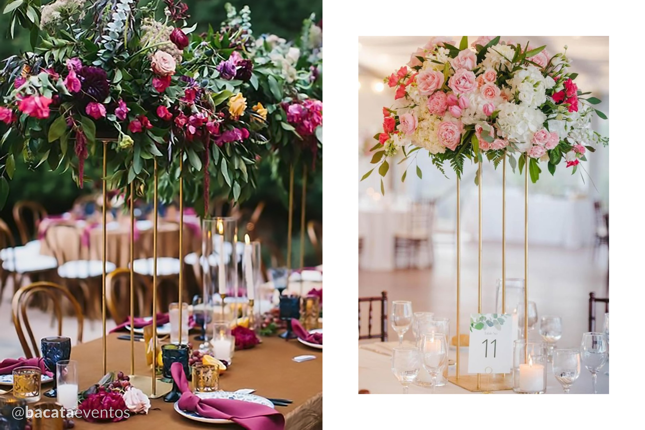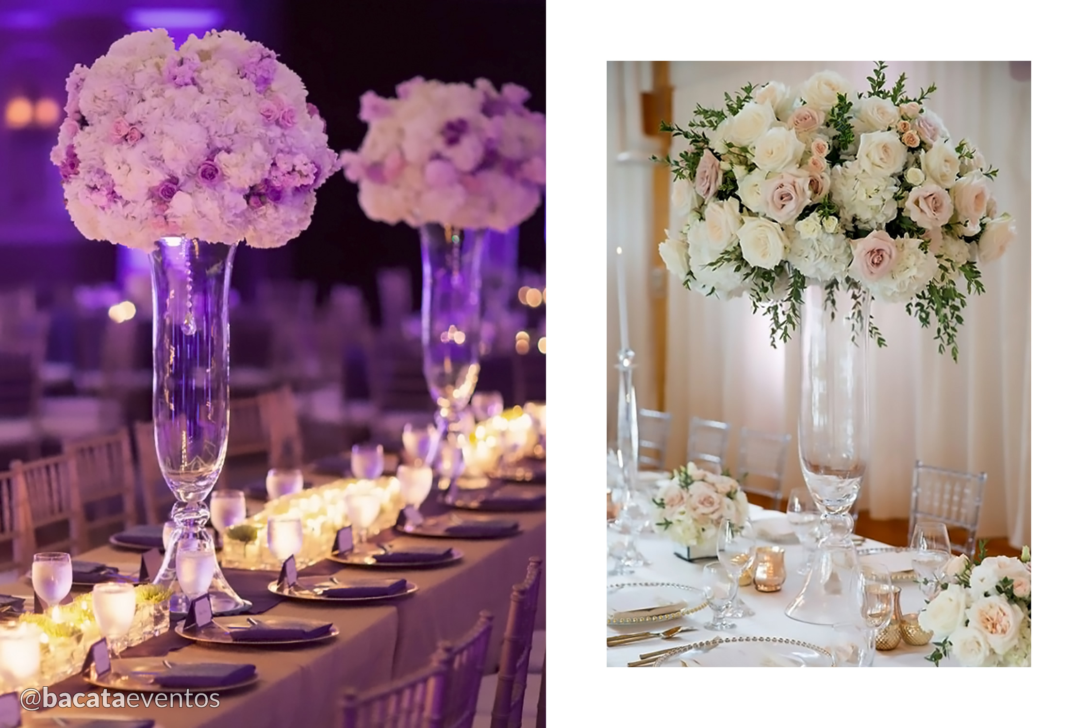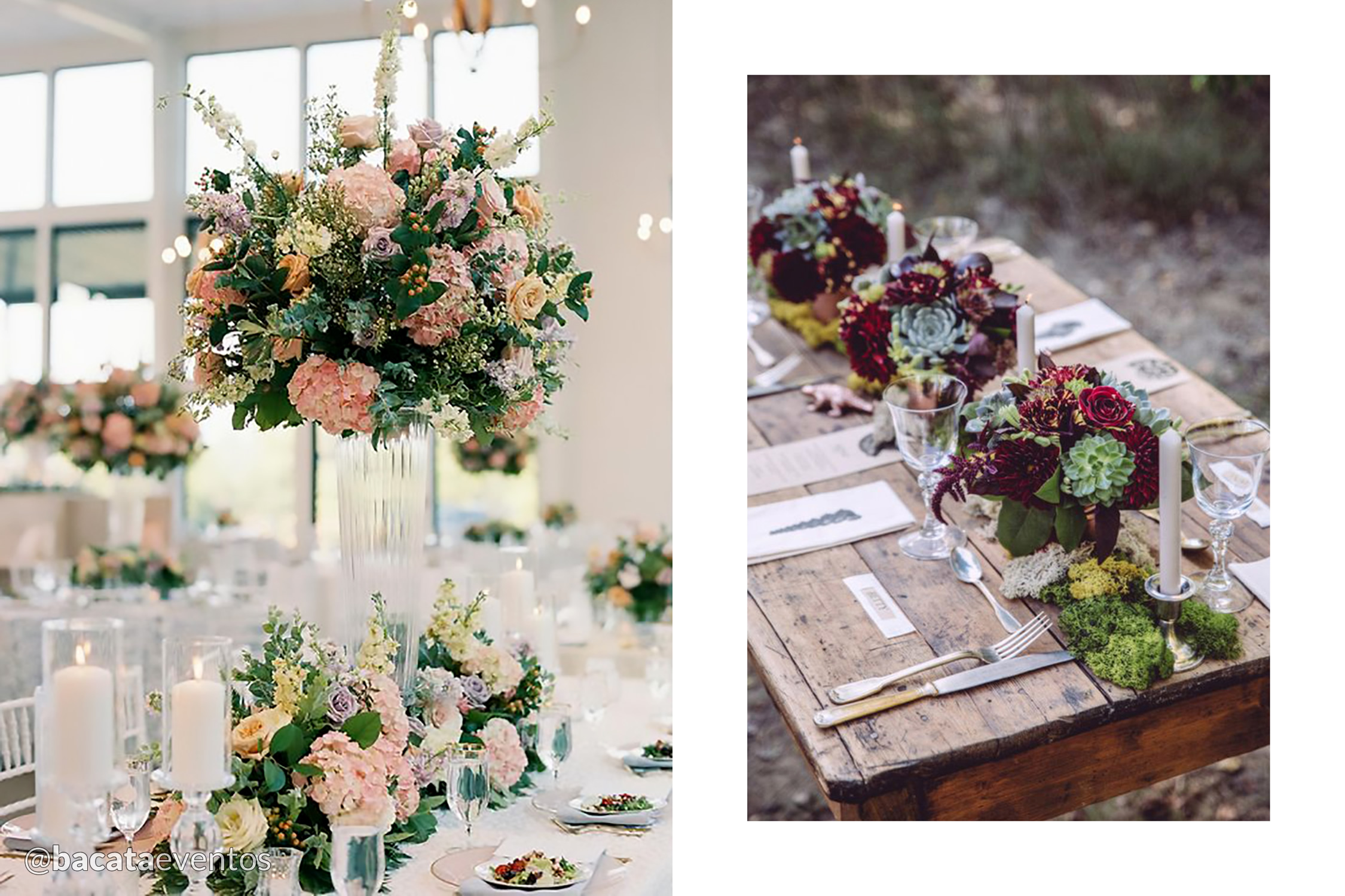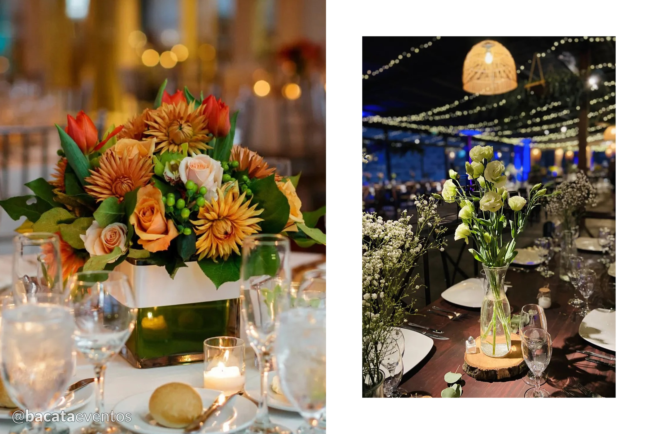 Los centros de mesa son arreglos florales aportan frescura, color y vida a las mesas, convirtiéndose en un elemento central de la decoración.