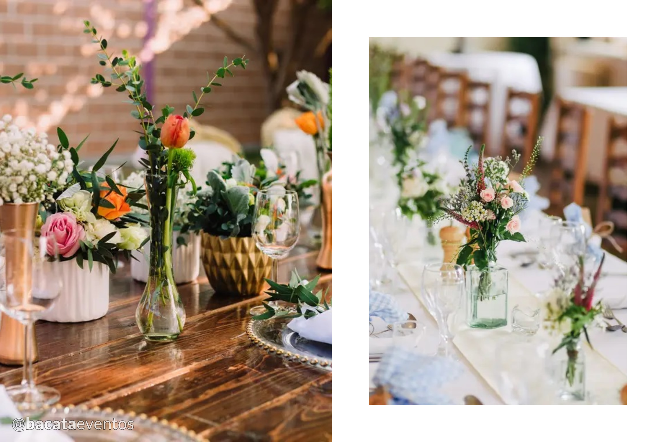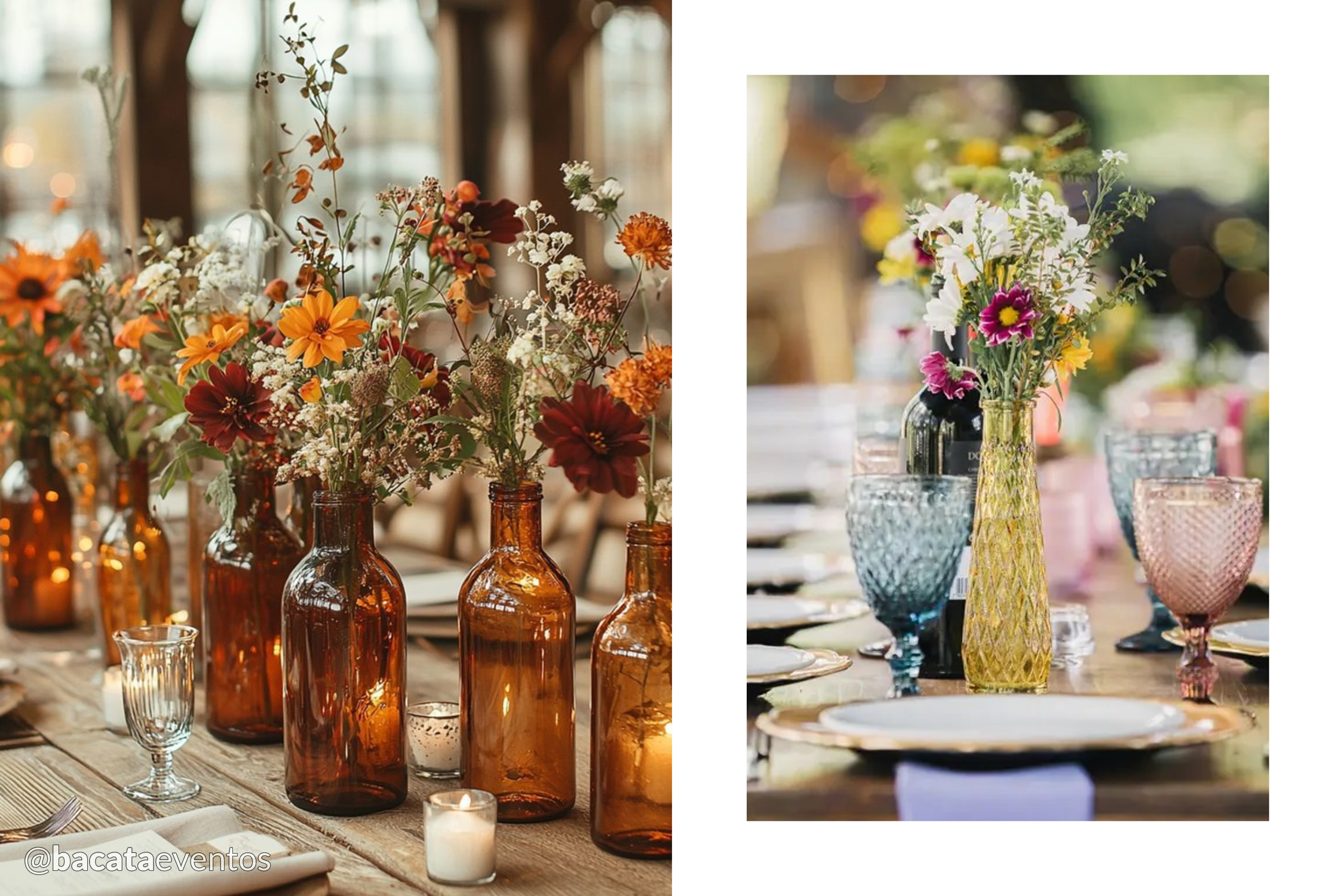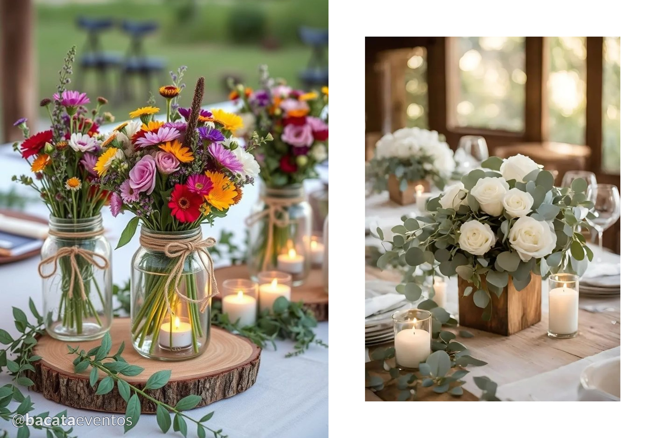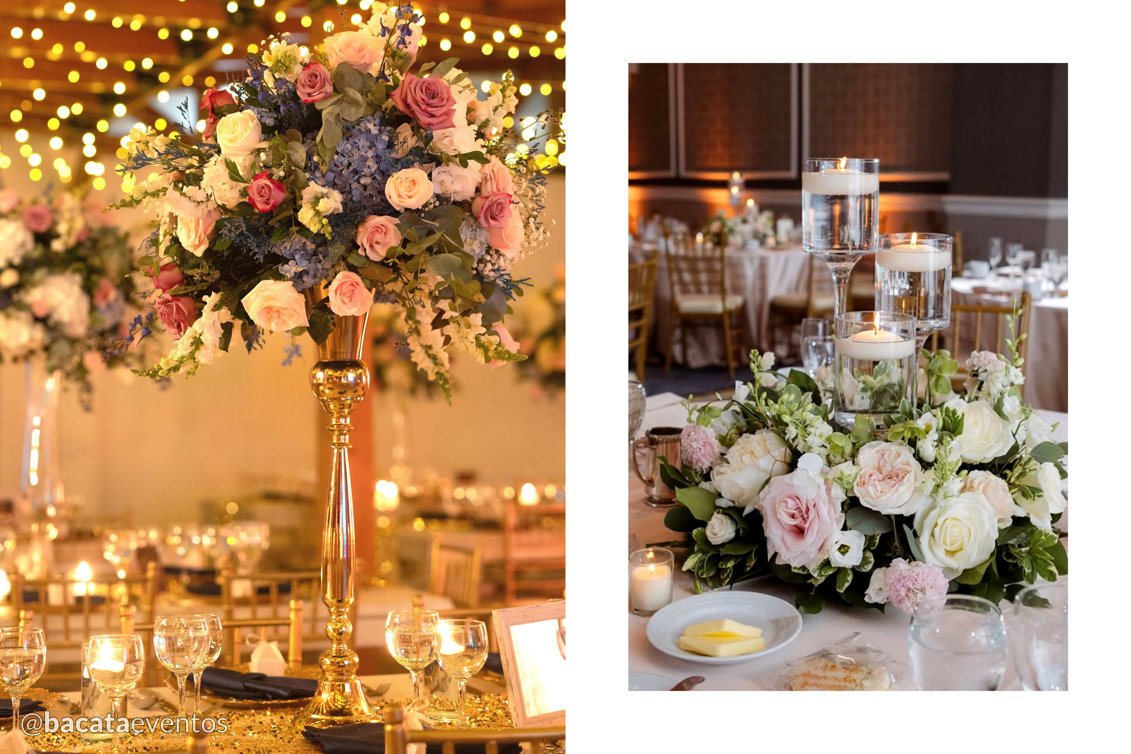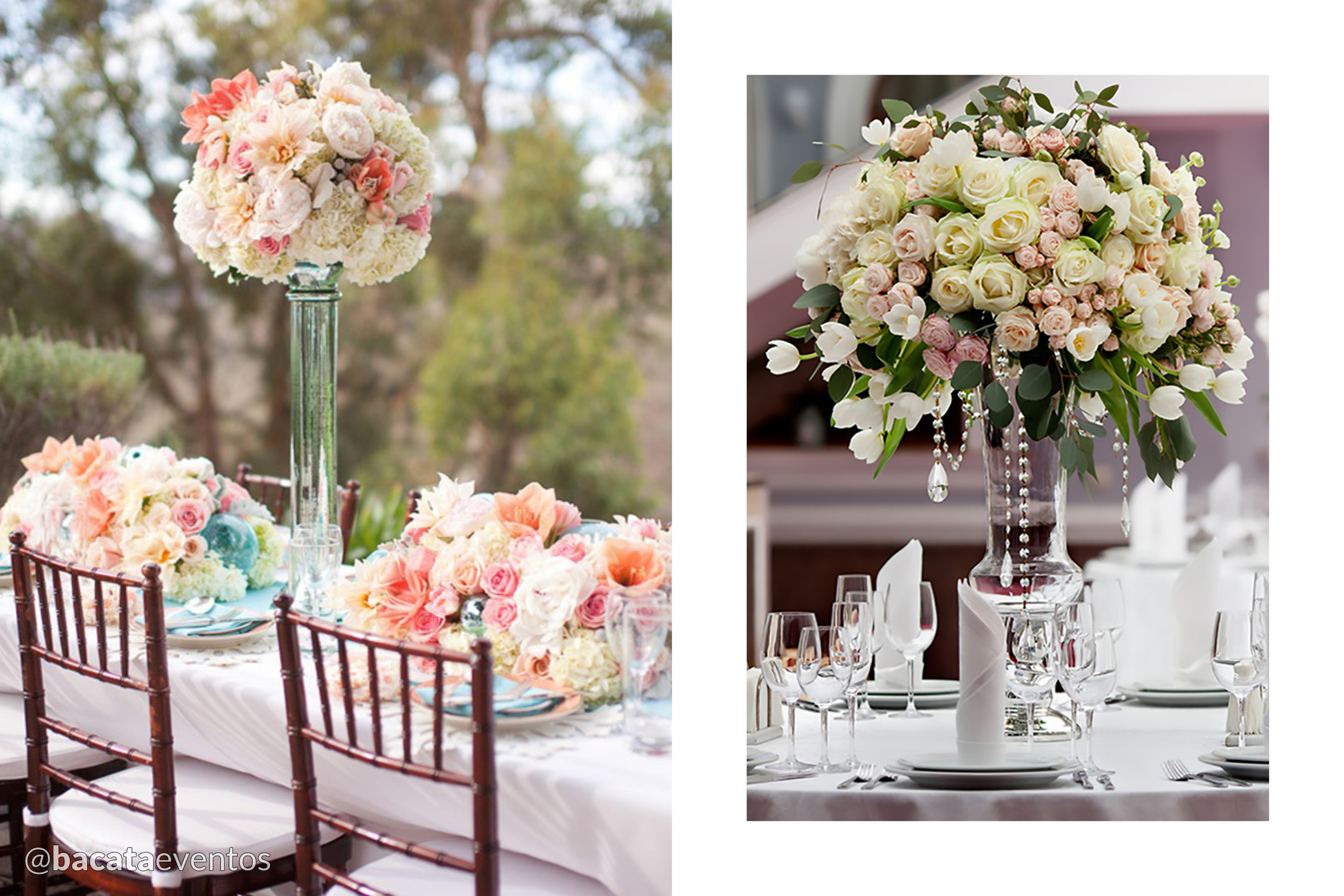 Los centros de mesa son arreglos florales aportan frescura, color y vida a las mesas, convirtiéndose en un elemento central de la decoración.