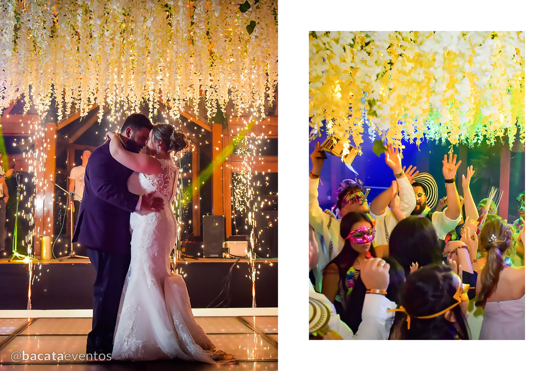 La pista de baile, por su parte, es el corazón palpitante de la celebración, el lugar donde la alegría se desborda y los recuerdos se graban entre risas, pasos y abrazos. Su decoración debe invitar a moverse, a dejarse llevar por la música y a vivir la magia del momento. Desde estructuras con iluminación LED, efectos de luces románticas, hasta detalles florales aéreos, cada elemento se convierte en parte del espectáculo.