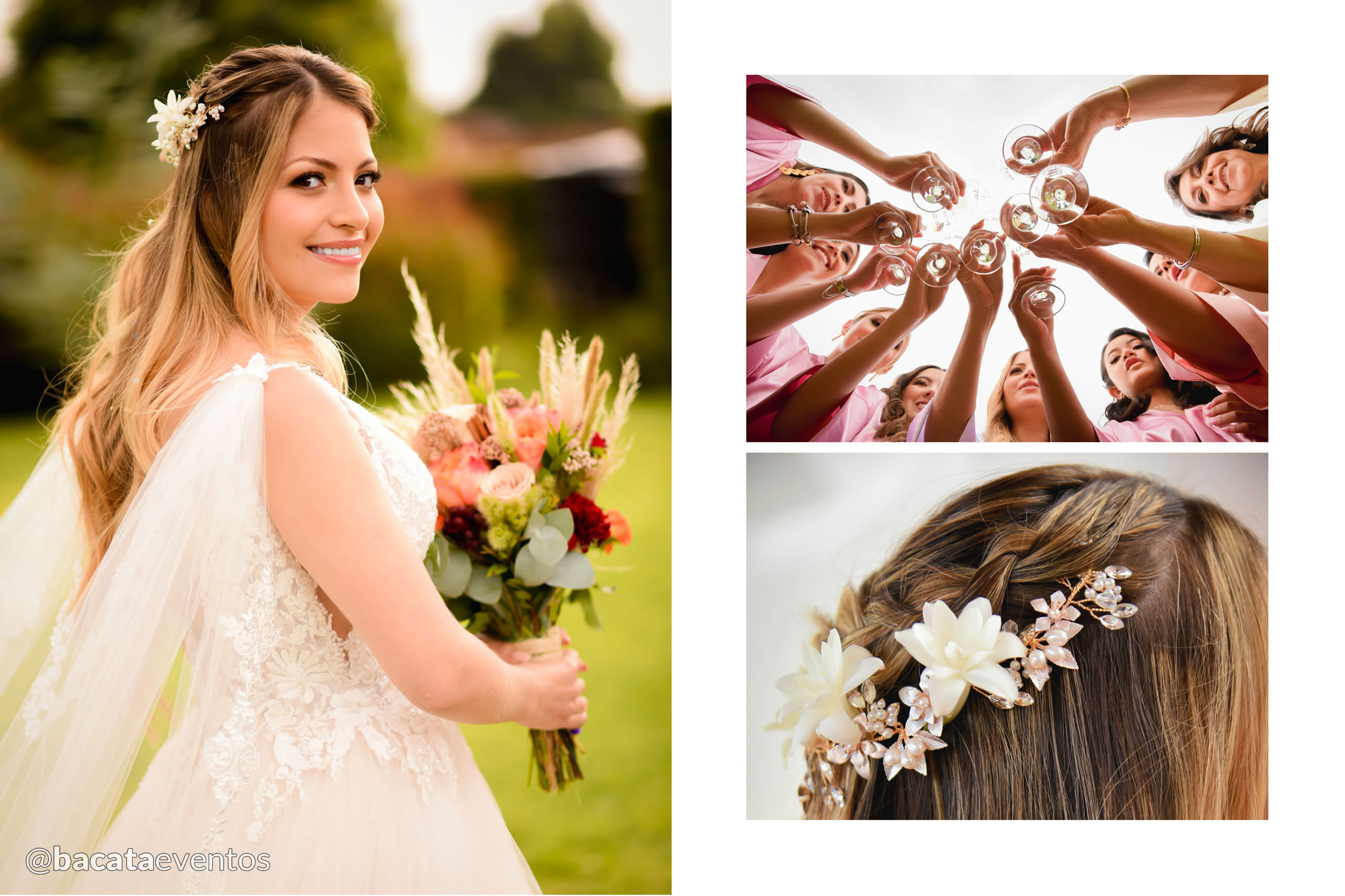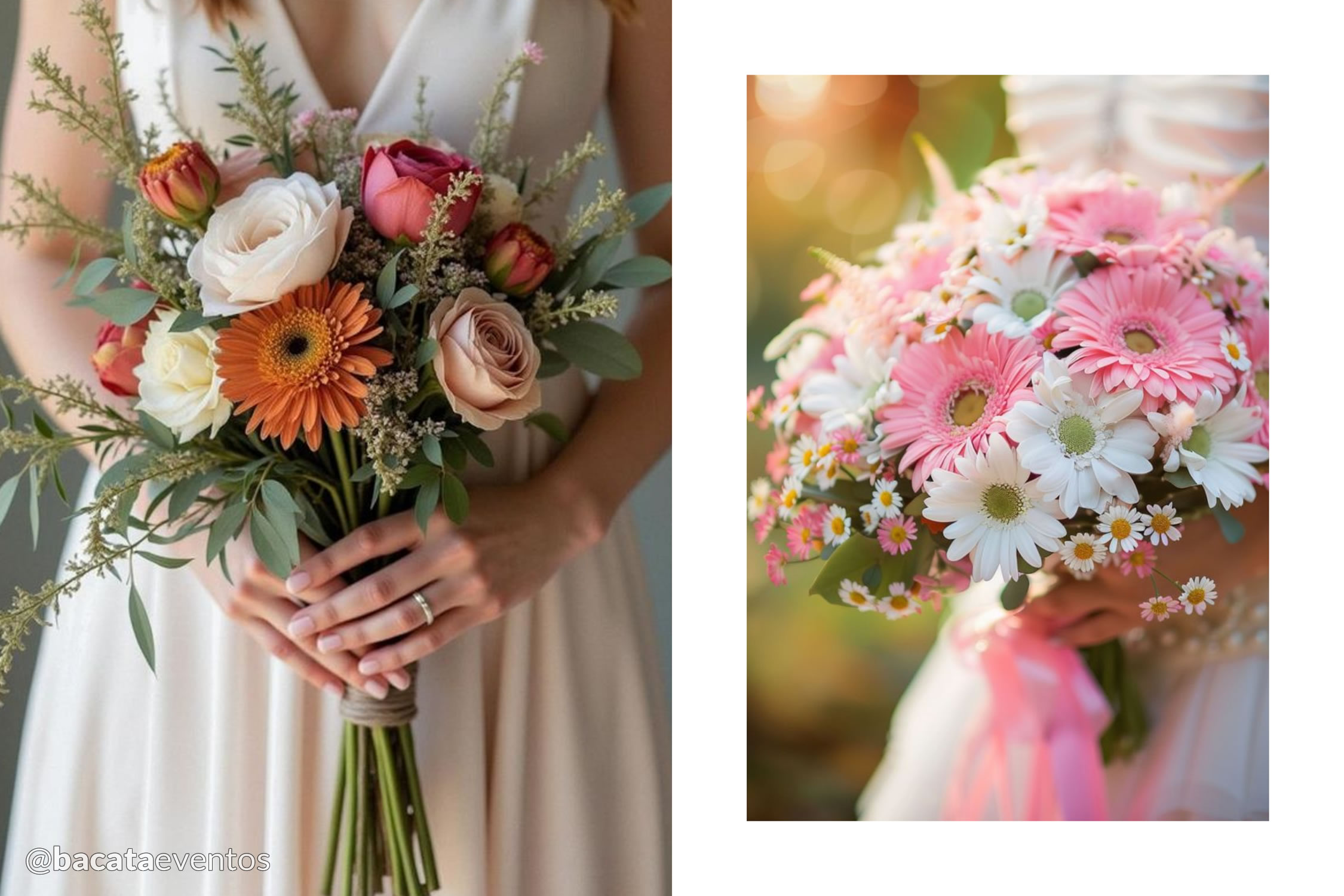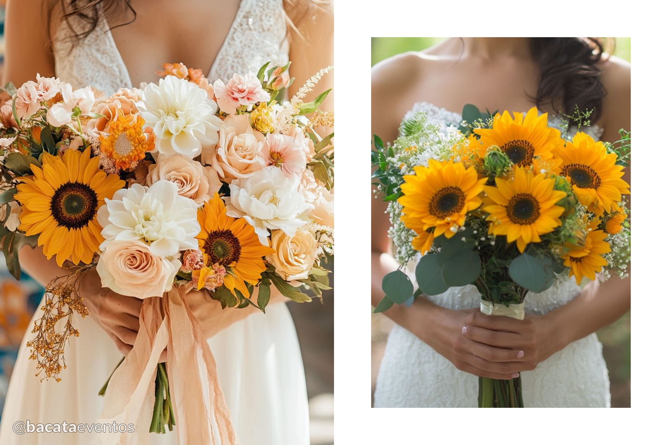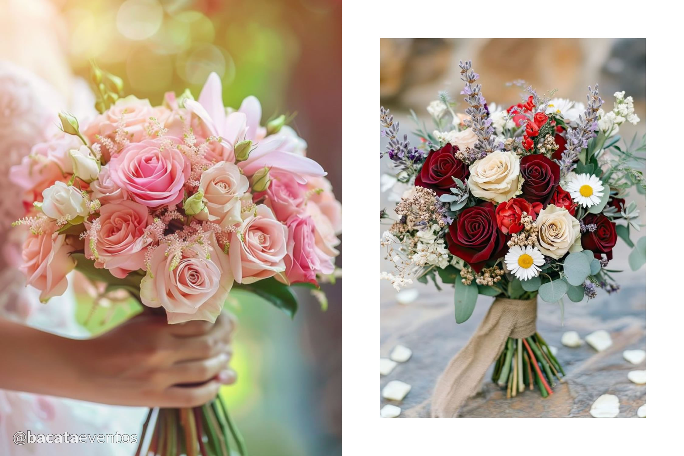 Bouquet para la novia: Es un ramo de flores que lleva la novia durante la ceremonia de boda. Es un accesorio tradicional y simbólico que puede reflejar el estilo personal de la novia, el tema de la boda, o incluso transmitir significados emocionales a través del tipo de flores elegidas.