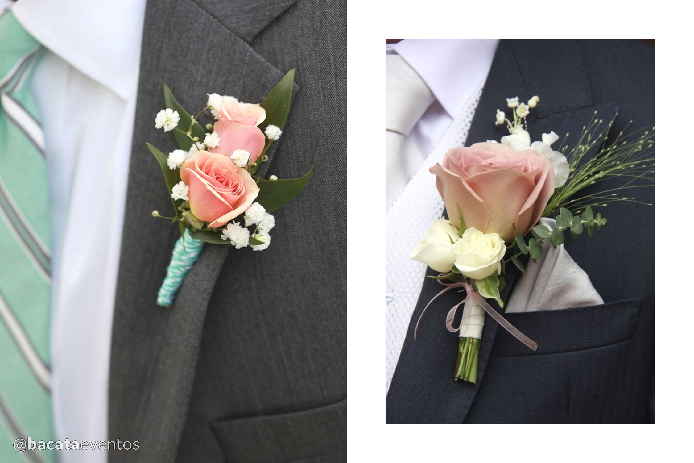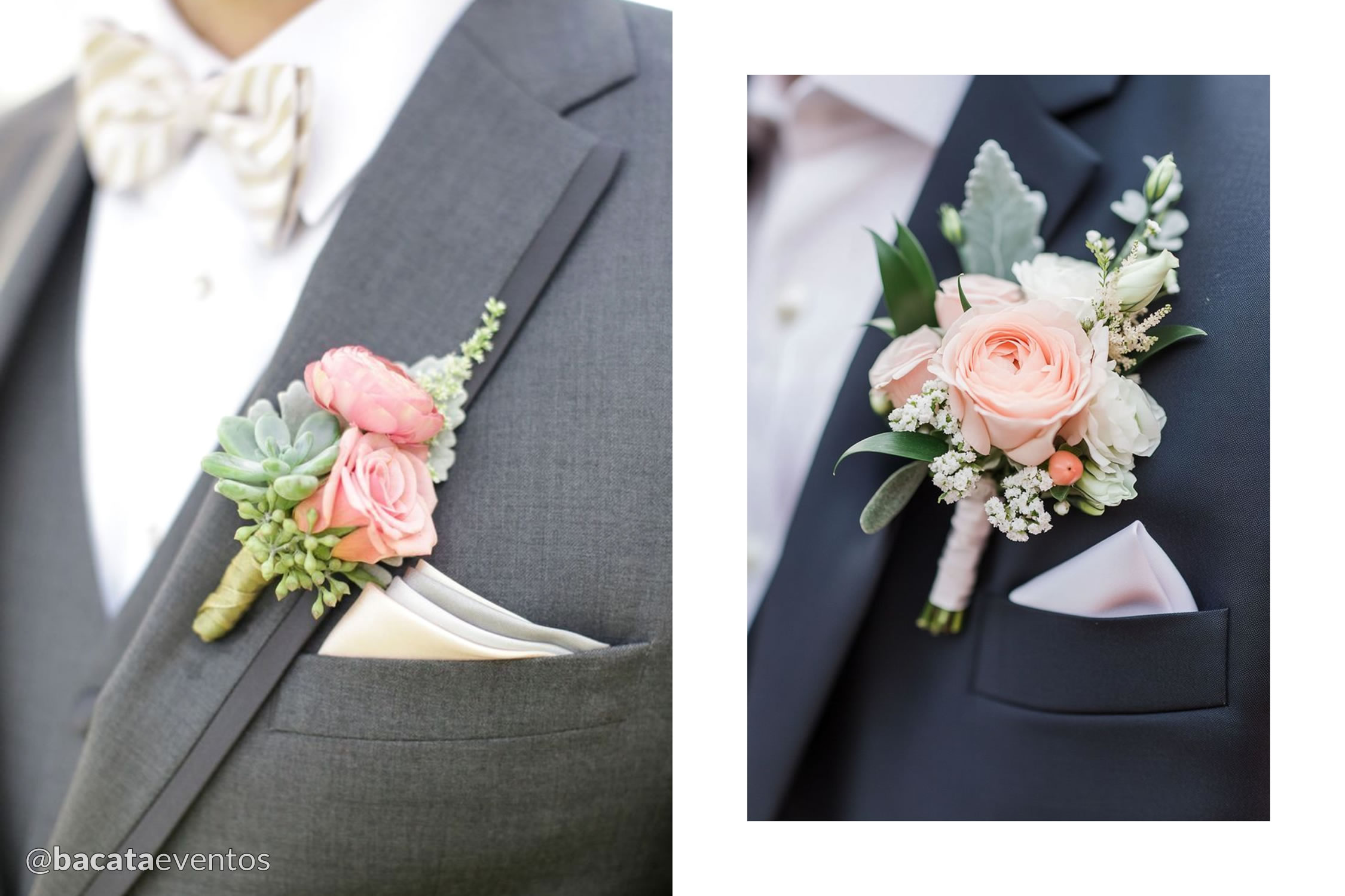 Boutonnière: Un pequeño adorno floral que se coloca en la solapa del traje del novio y en los trajes de los padres y padrinos o familiares cercanos.