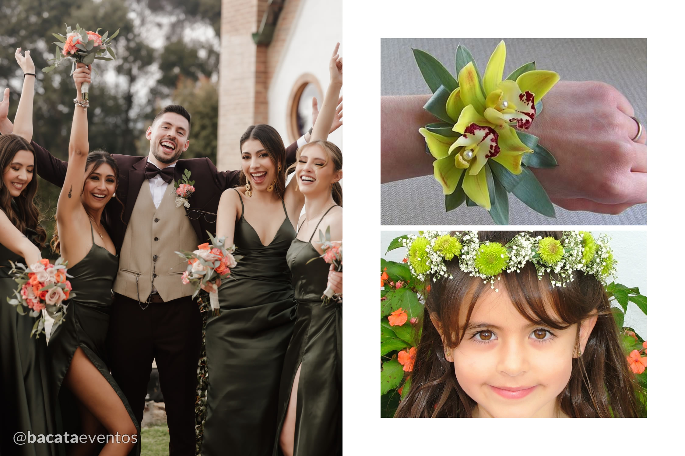 Detalles florales adicionales: Accesorios para el peinado de la novia, mini bouquets o pulseras florales para las damas de honor o coronas de flores para las pajecitas