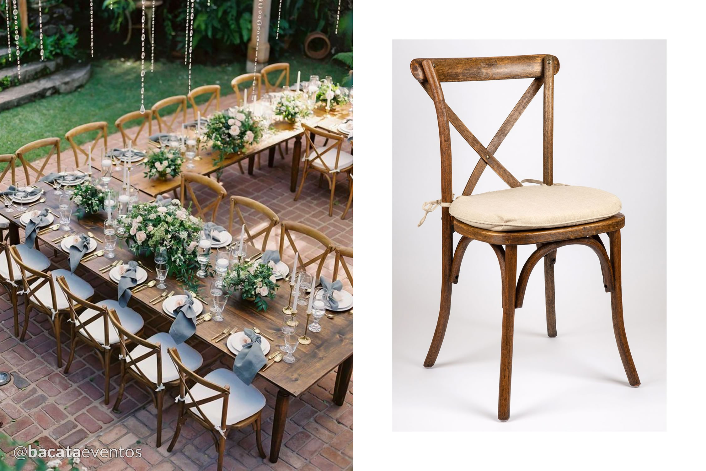 Desde elegantes sillas Tiffany, mesas vestidas con delicadeza, hasta rincones chill out con sofás y cojines suaves, el mobiliario transforma cualquier espacio en un lugar mágico. Ya sea una boda al aire libre, en una hacienda, jardín o salón cerrado, los elementos se eligen con atención al detalle, buscando siempre crear ambientes cálidos, sofisticados y memorables.