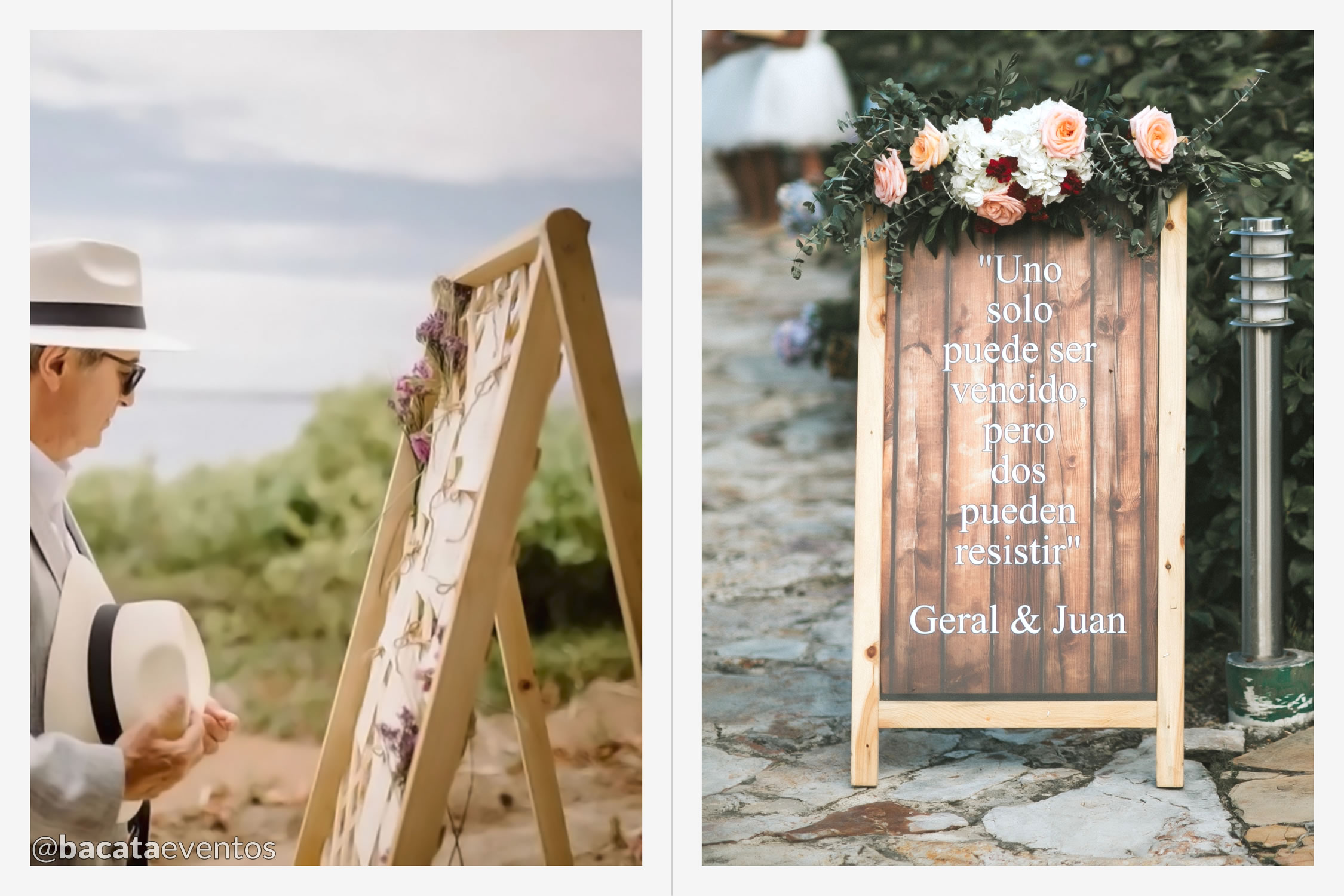 Carteles decorativos y señalética: Letreros que, además de orientar o informar embellecen cada rincón de la celebración, con frases dulces, indicaciones elegantes u otros