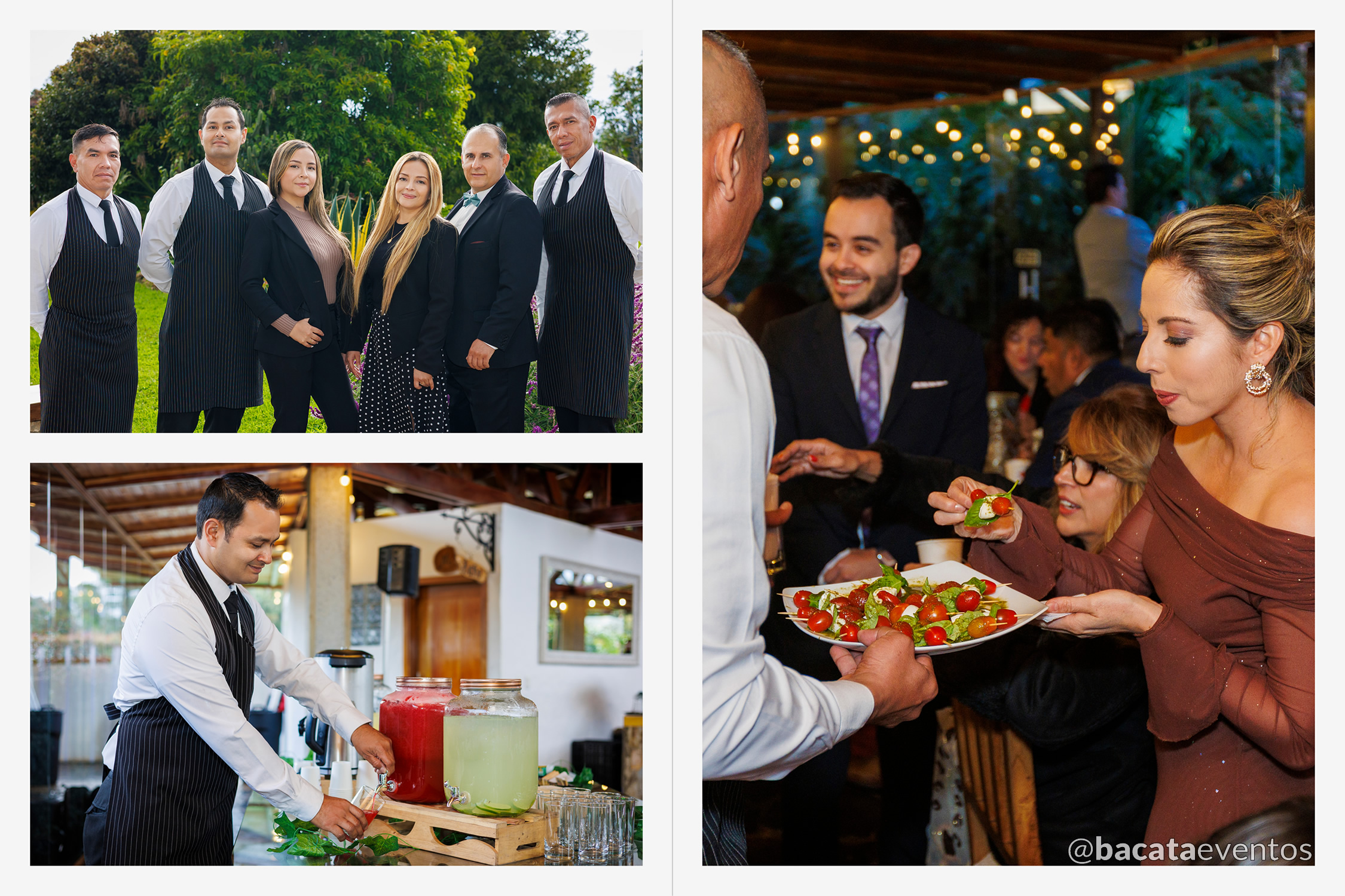 • Meseros: Servicio de mesas, entrega de pasabocas, platos principales y postres.
