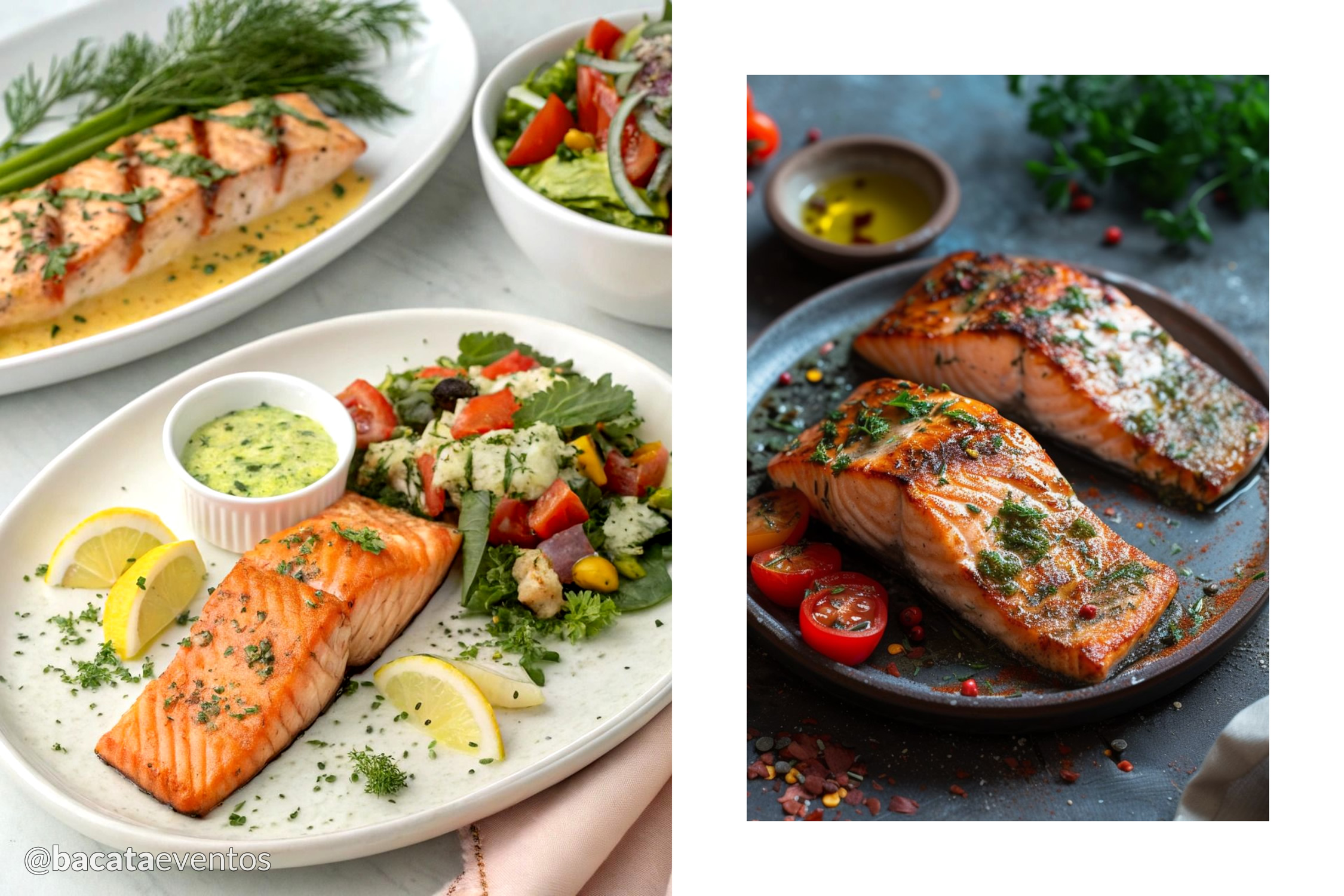 Plato principal 1 – 1 carne especial (Salmón, pavo, langostinos) de 220 gramos + 2 acompañamientos